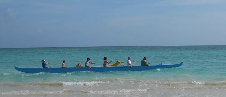 - canoeing to a nearby island in a six-man outrigger at amazing speed