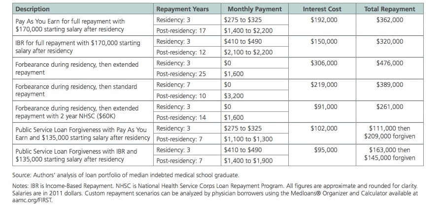 Medical students are certainly aware of the high cost when they enroll and borrow money, but interest on deferred repayment is staggering. And it’s not clear that students are aware of the options they have. The new study lays out the numbers starkly. If a student does not start to pay down a loan during residency and waits until he or she is finished with school, with the interest, they may owe between $320,000 to $476,000.
